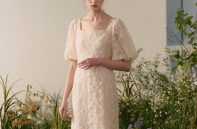 스팽글 장식 스퀘어넥 원피스