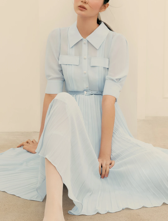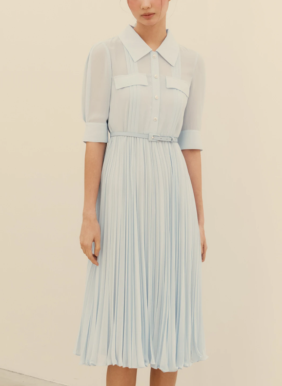 용감무쌍 용수정 (76회) 임주은 원피스_라인어디션 하늘색 쉬폰 주름 플리츠 원피스 (최혜라 옷)