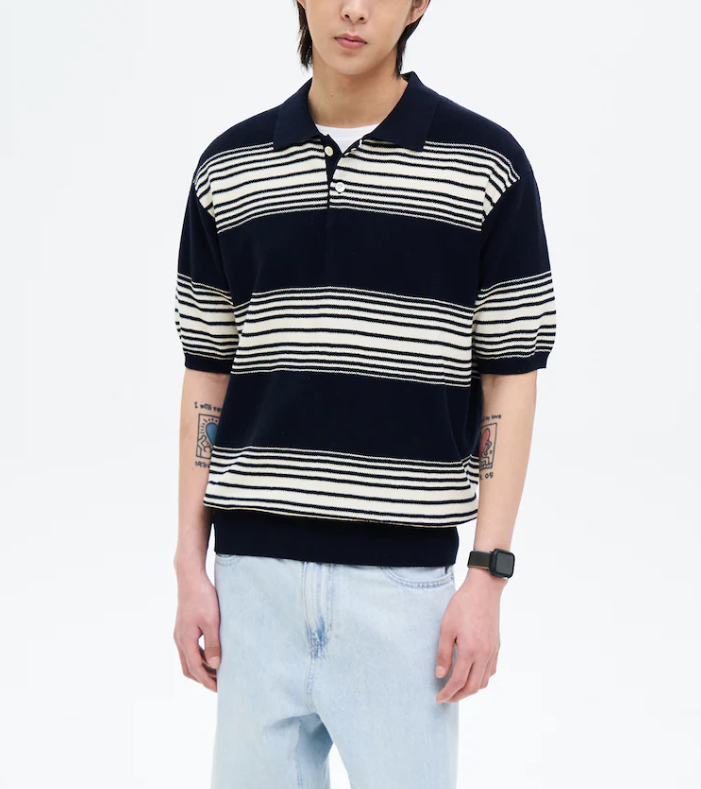 에잇세컨즈의 레트로 스트라이프 칼라 니트 반소매, 바로 이거예요!
