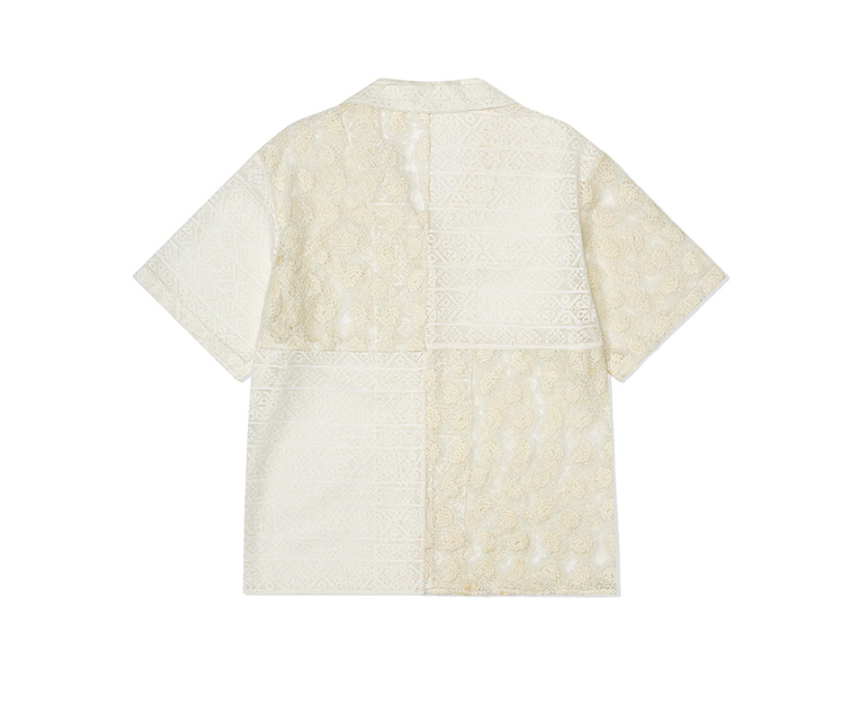 바로 프리터(FRITUR)의 Dandelion Patchwork Shirt Ivory_F252ST01입니다. 🌼다양한 텍스처가 정교하게 조합된 이 셔츠는,