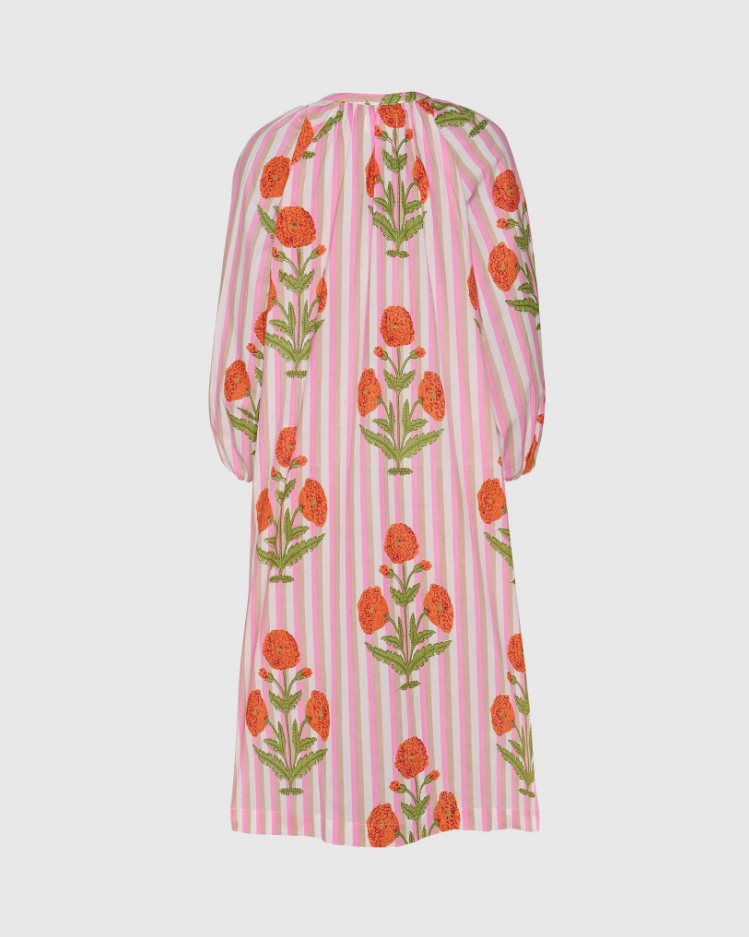 - 블러시 핑크 스트라이프 베이스에 만다린 컬러 플로럴 프린트가 매력 포인트