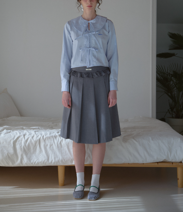 - A라인 또는 플리츠 스커트와 매치하면 소녀감성 가득한 러블리 룩 완성. 발레리나 플랫이나 로퍼 추천.