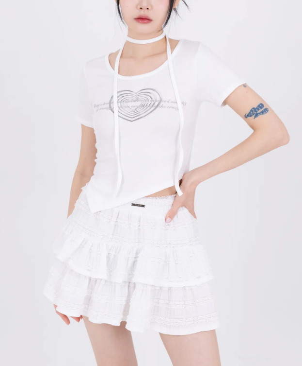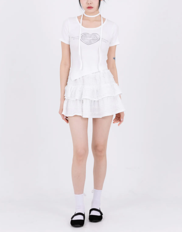 사랑스럽고도 스타일리시한 여름 패션을 완성할 수 있어요🤍8월13일 츄티셔츠 강민주티 하트티 언발티 흰색 티셔츠 반팔티 옷 의상 코디 패션