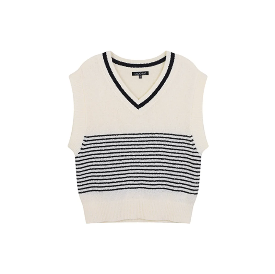 나는 솔로 213회 214회 송해나 니트, LAP 숄 세트 스트라이프 브이넥 베스트 아이보리