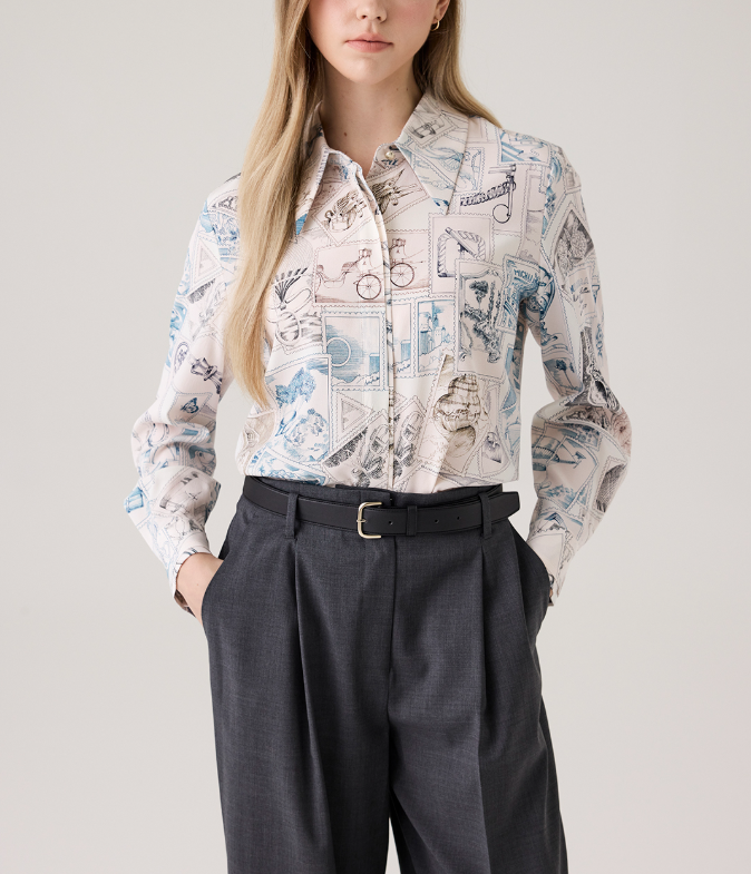<모델명> 실크 그래픽 히든 블라우스 MIP8WBL371