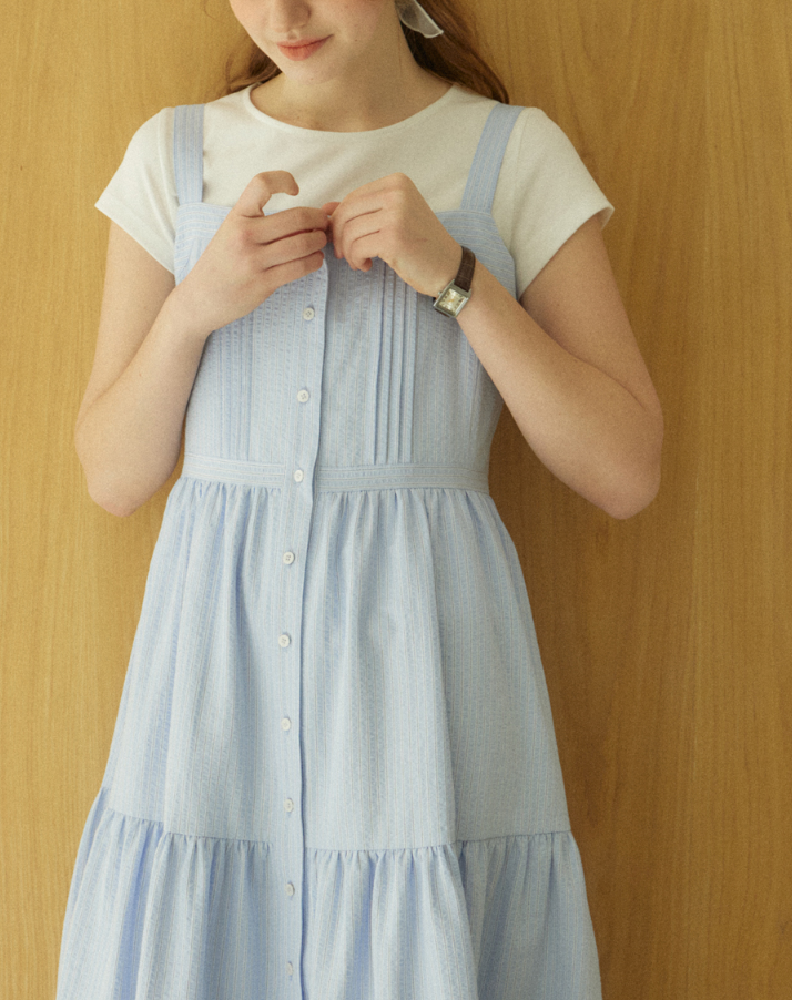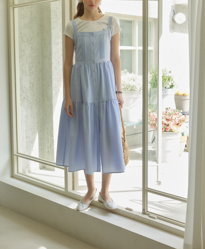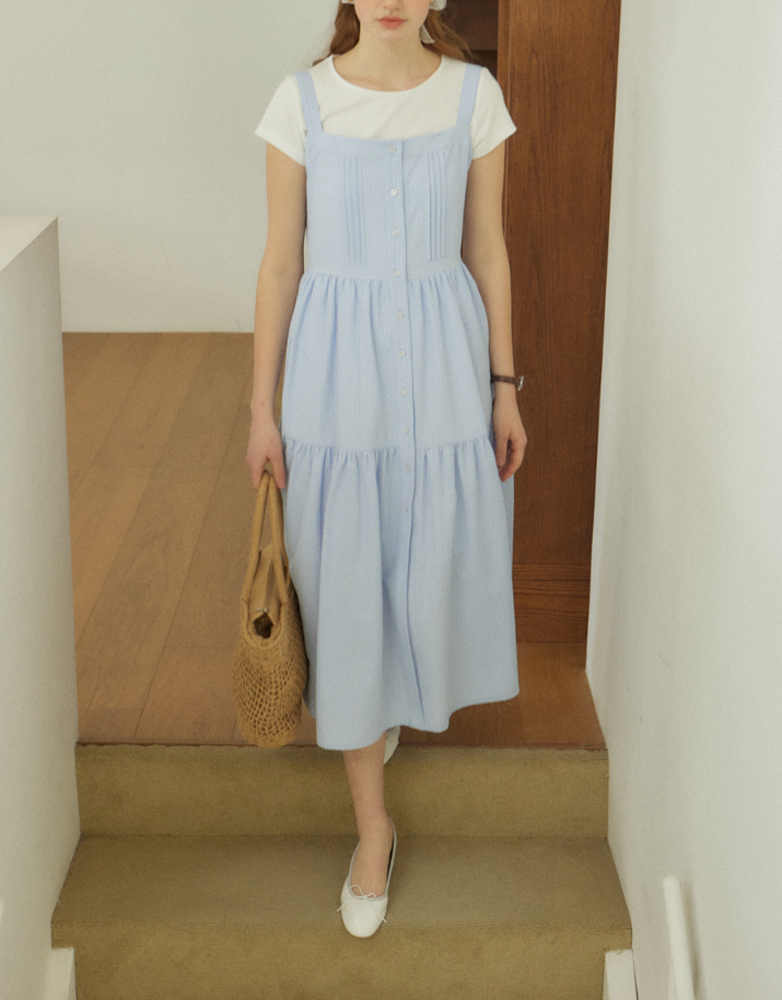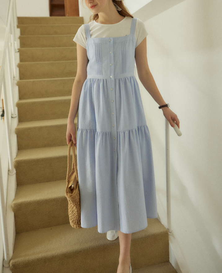 <모델명> Layered Pintuck Sleeveless Dress - Sky blue