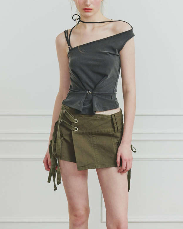 언밸런스한 어깨 디자인과 허리 부분의 후크 디테일이 만나 유니크하면서도 섹시한 분위기를 연출해 줘요. 네크라인의 스트링은 다양한 스타일로 묶을 수 있어 원하는 대로 연출하는 재미까지 있답니다. 부드럽고 신축성 좋은 원단으로 편안한 착용감을 자랑하며, 어깨 O링과 섬세한 로고 자수 디테일이 고급스러움을 더해줘요.