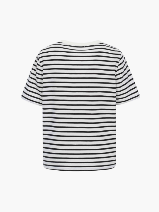 기본적인 줄무늬 티셔츠에 독특한 포인트가 더해져 꾸민 듯 안 꾸민 듯 세련된 느낌을 주더라고요. 혹시 저처럼 이 티셔츠의 정보를 찾고 계신 분들을 위해 자세히 알려드릴게요!