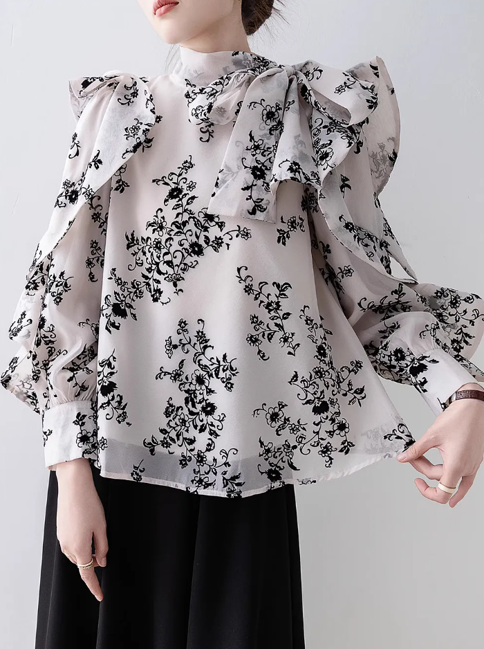 [로아체] 봄 쉬폰 리본 타이 벌룬 블라우스 루안트블라우스 RC-525