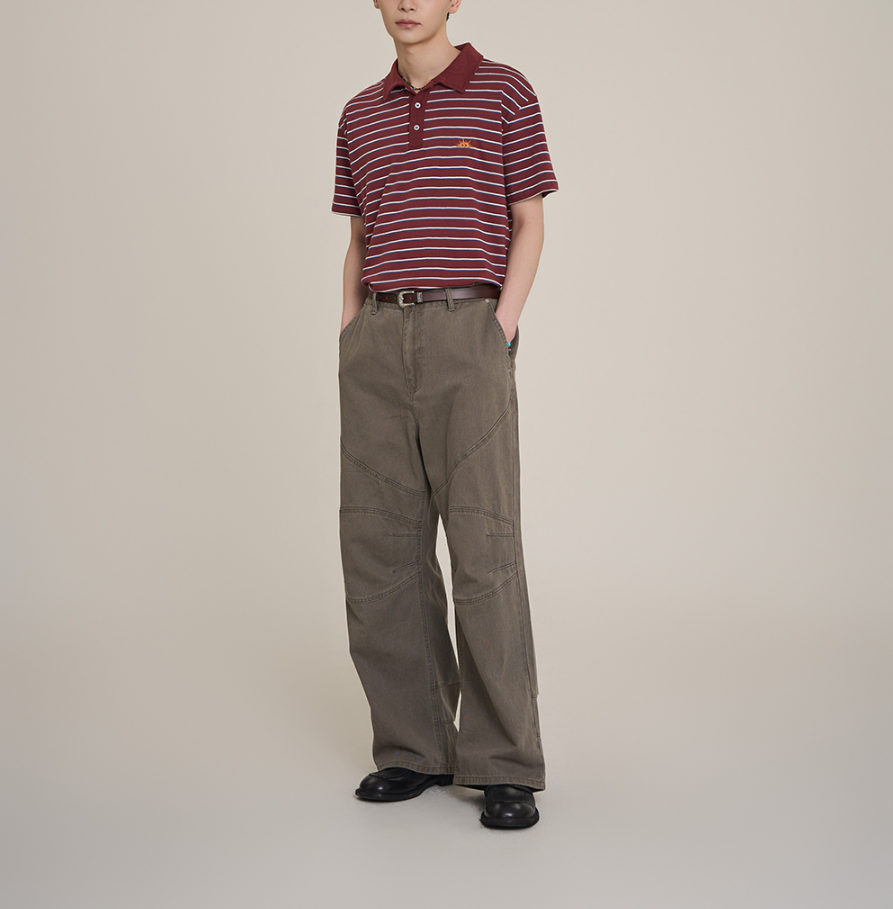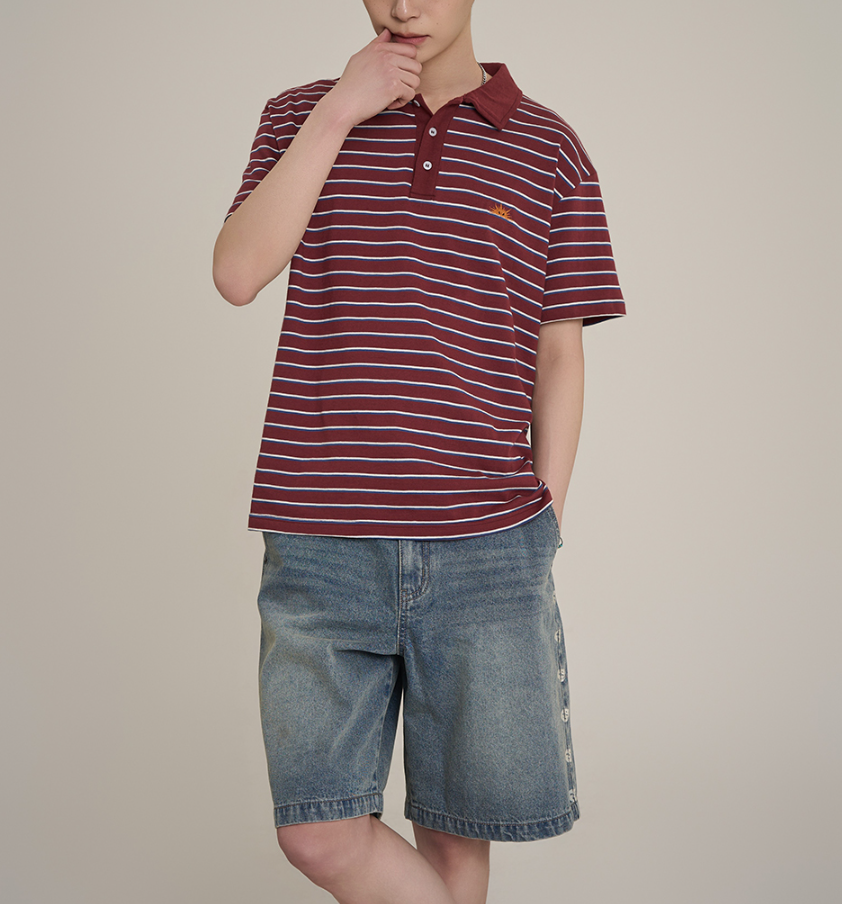 - 빈티지한 스트라이프 패턴: 흔하지 않은 버건디 컬러에 화이트 스트라이프가 조화롭게 어우러져 빈티지하면서도 세련된 느낌을 줍니다. 여름철 하나만 입어도 충분히 멋스럽습니다.