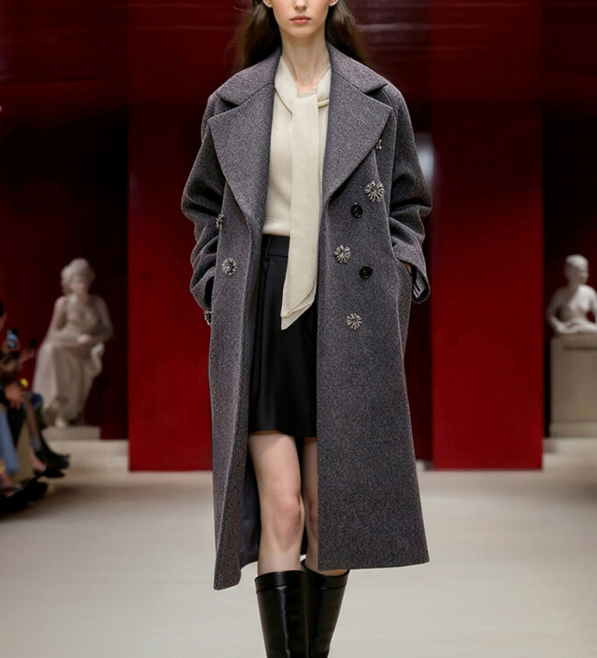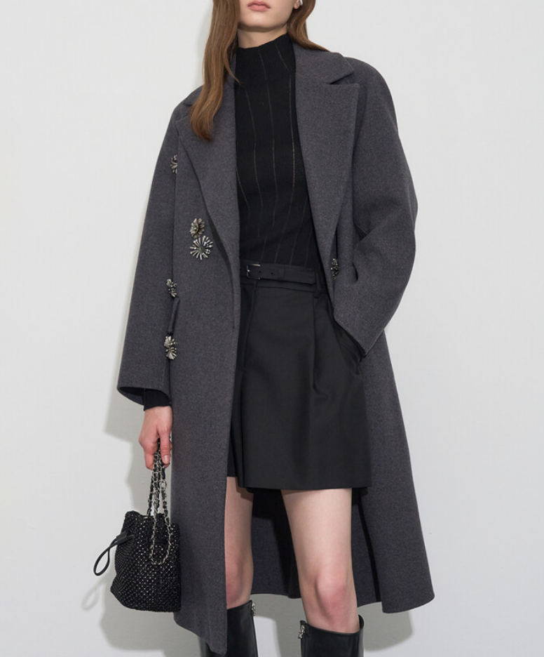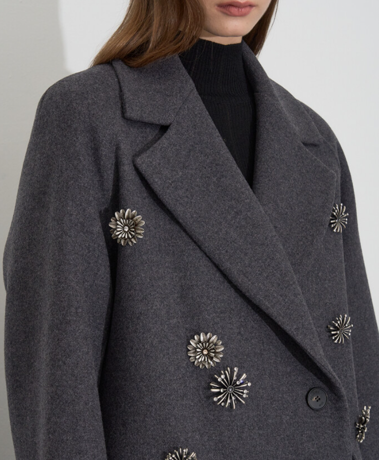 <품명> 캐시미어 블렌드 더블 코트 & 메탈 플로럴 브로치