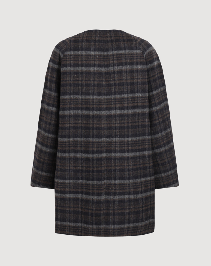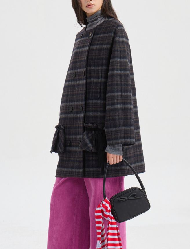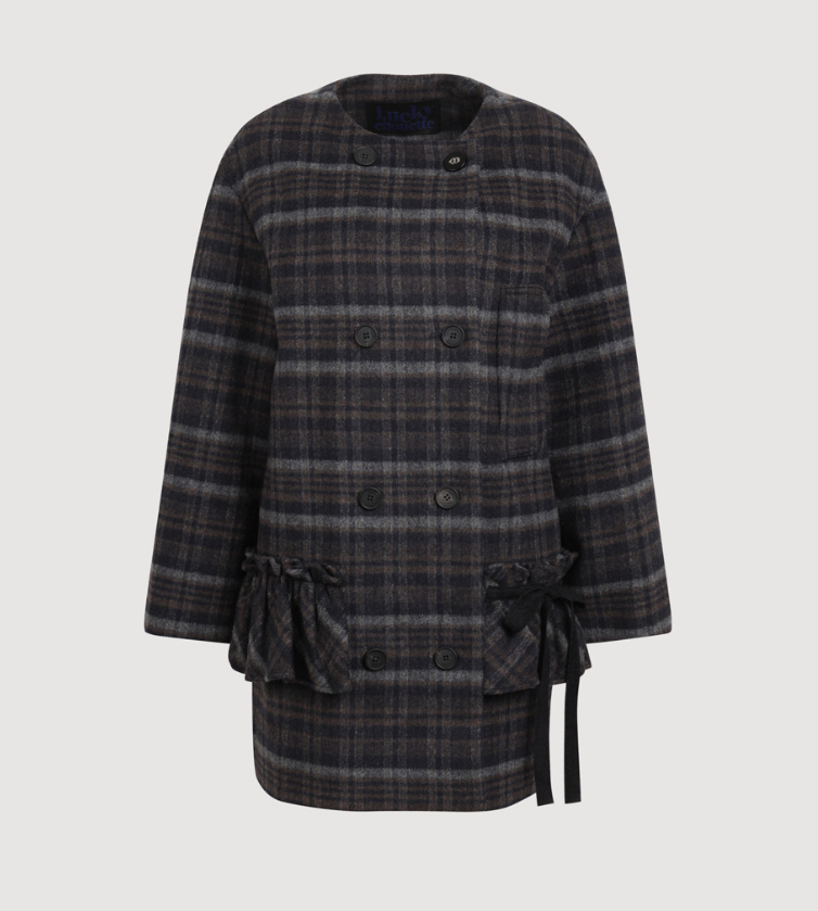 <모델명> Round Neck Frill Detail Double Coat (dark navy) LFCAW25330NYD11월30일 영라 코트 노카라 체크코트 외투 옷 의상 코디 패션