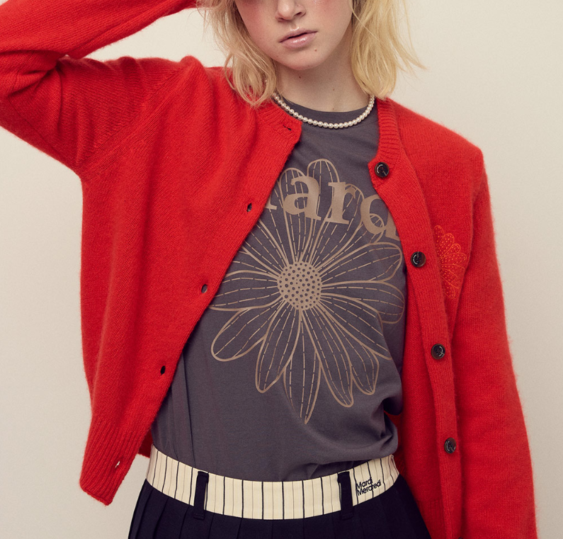 <모델명> RACCOON BLENDED CARDIGAN ROUND NECK_RED ORANGE12월21일 영라 빨간색 빨강 빨간 가디건 의상 코디