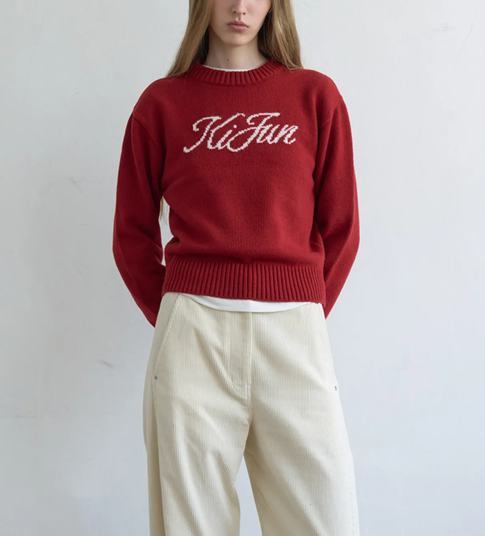 리뉴얼된 로고가 돋보이는 니트 스웨터로, 탄탄하지만 부드러운 터치가 특징입니다.