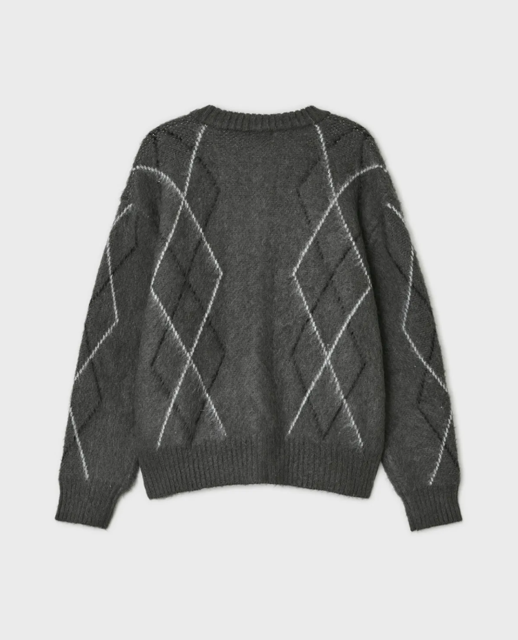 <모델명> 브러쉬드 아가일 가디건 - 그레이