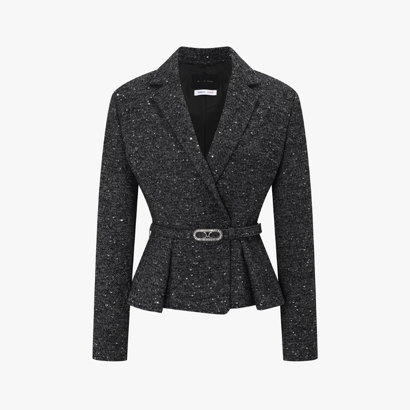 <모델명> 글리터 스팽글 벨티드 울 자켓 MIPBWJK020 다크 그레이