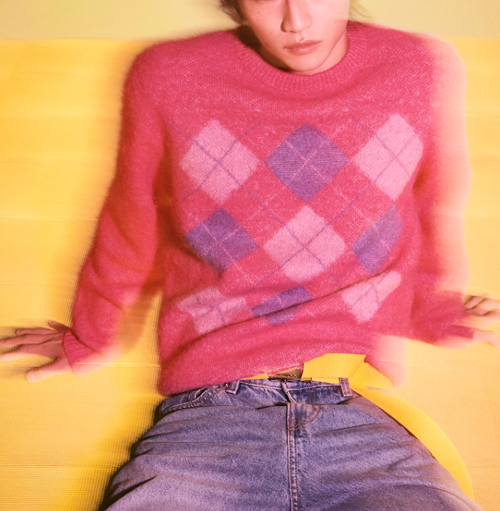 <모델명> [SAJA BOYS] 아가일 니트 풀오버 - 핑크