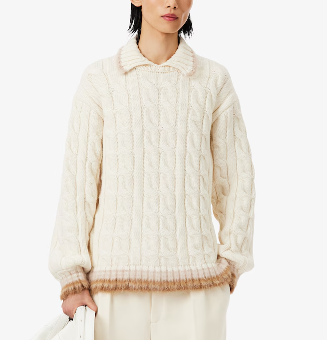 - 특징 : 굵은 케이블 니트 조직, 폴로 칼라 디자인