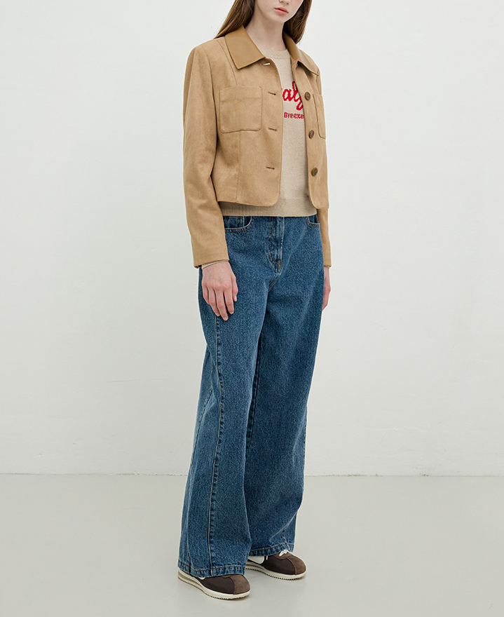 부드러운 터치감의 스웨이드 크롭자켓입니다.