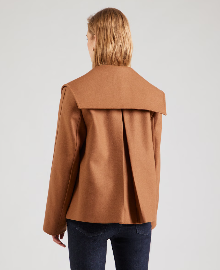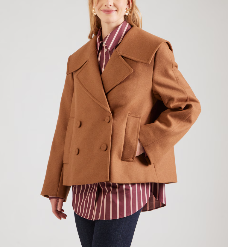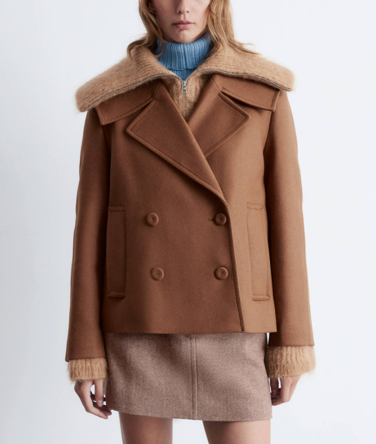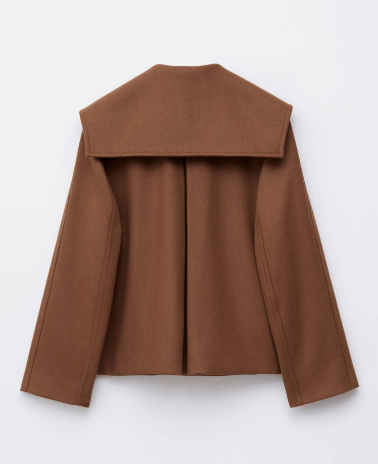 A 라인의 피 코트 실루엣이 특징으로 노치 라펠,