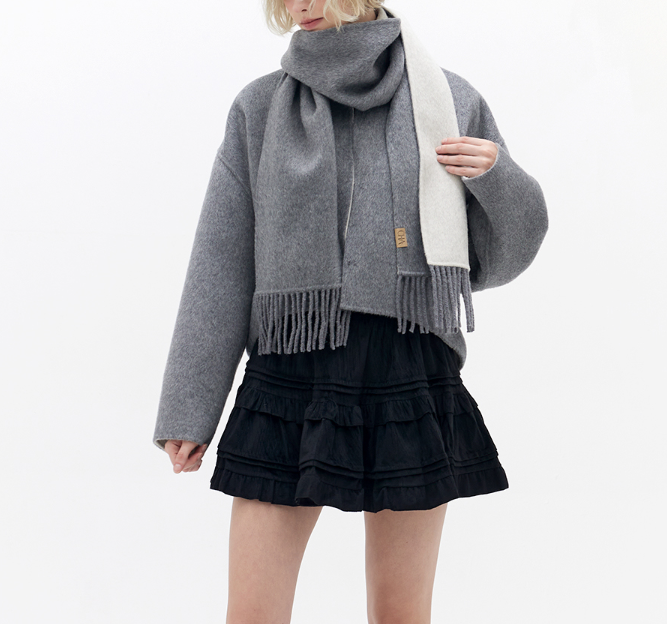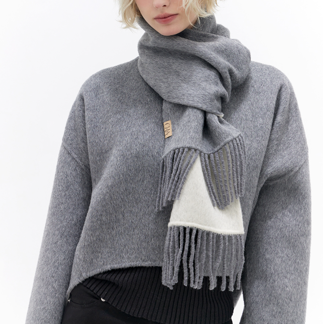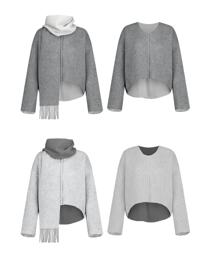 코트컬러와 동일하게 두컬러를 양면으로 배치하여 세트로 준비했습니다.1월19일 1월20일 회색 그레이 머플러 세트 크롭 코트 자켓 외투 아우터 옷 의상 코디 패션