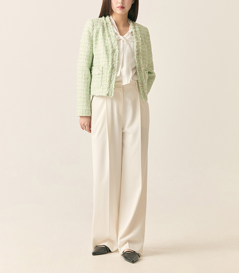 <모델명> 브이넥 트위드 자켓_RMJKF23S13 민트1월20일 조향기 민트색 트위드자켓 외투 아우터 옷 의상 코디 패션