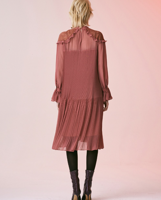 <모델명> LACE SHOULDER ALL PLEATS LONG DRESS / ROSE PINK
