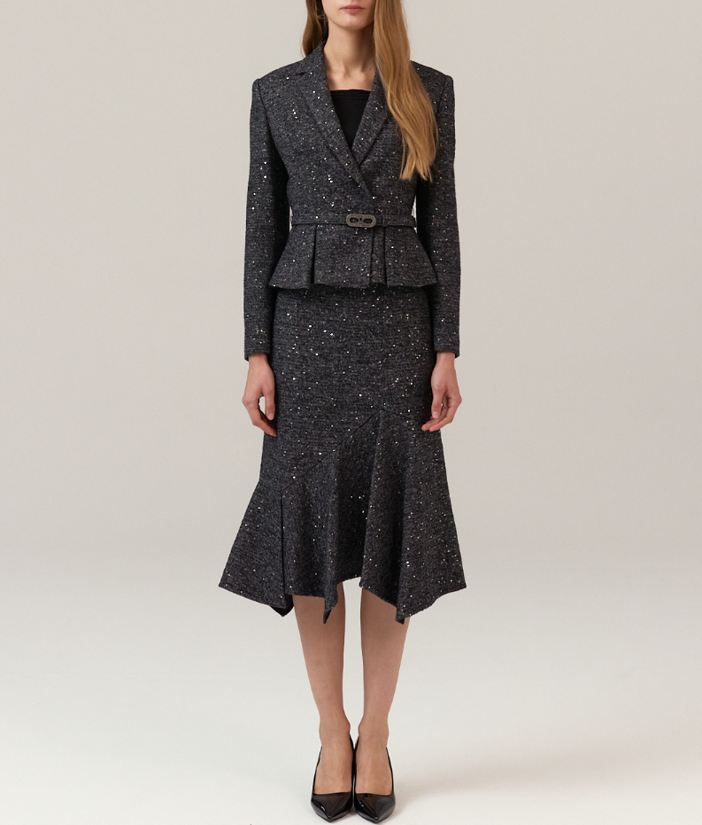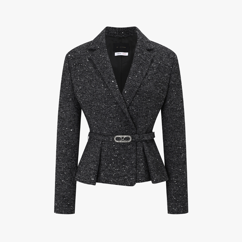 <모델명> 글리터 스팽글 벨티드 울 자켓 MIPBWJK020 다크 그레이