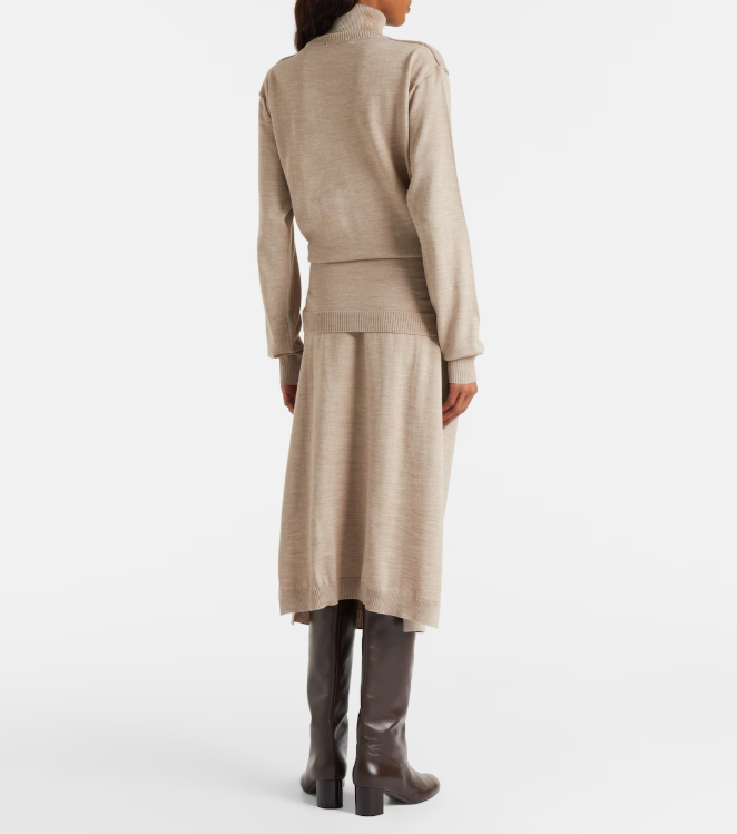 <모델명> 베이지 트롱프뢰유 울 블렌드 미디 드레스