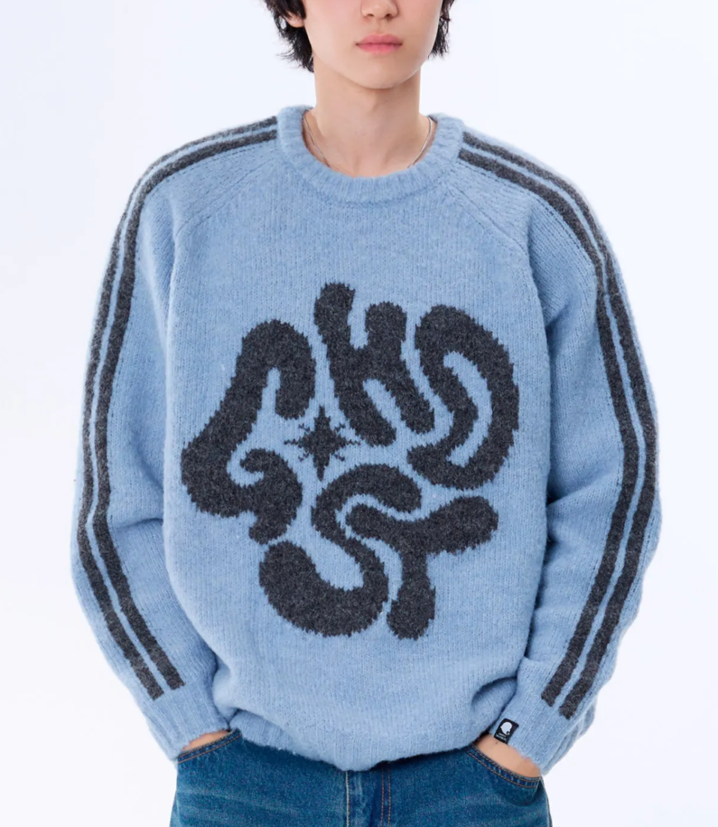 <모델명> 모헤어 그래픽 래글런 트랙 부클 니트 GKM-159_블루