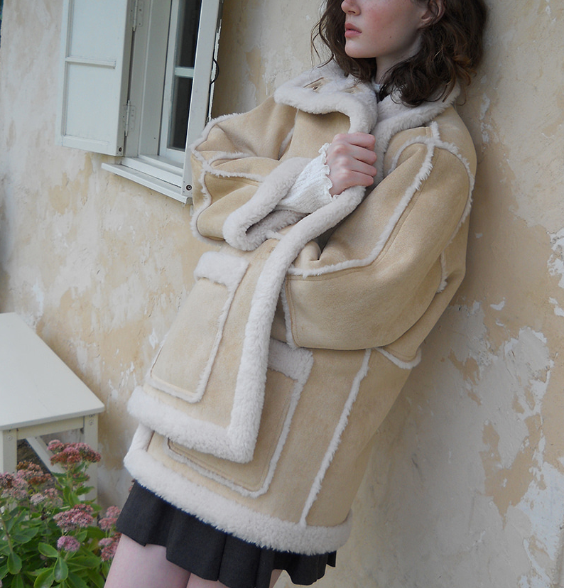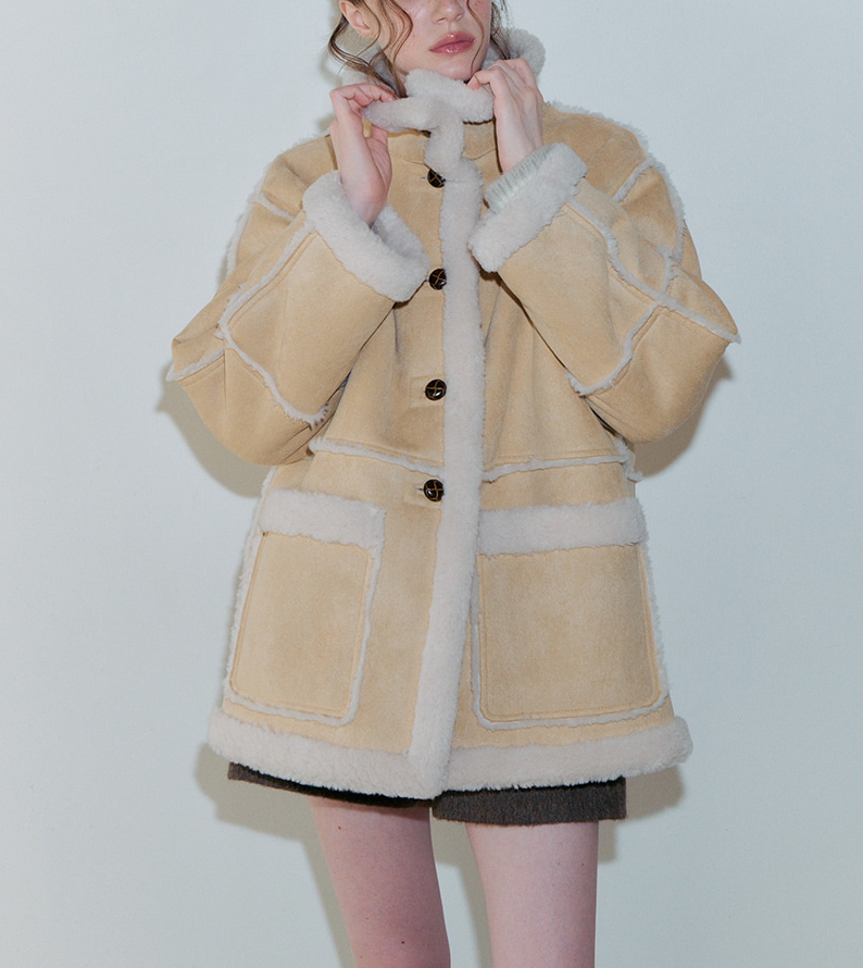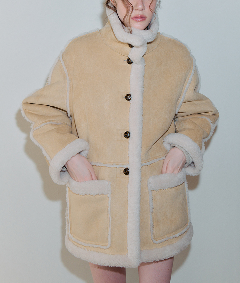 <모델명> Suede Button Mustang Coat, Light Beige PWXFC110UWW11