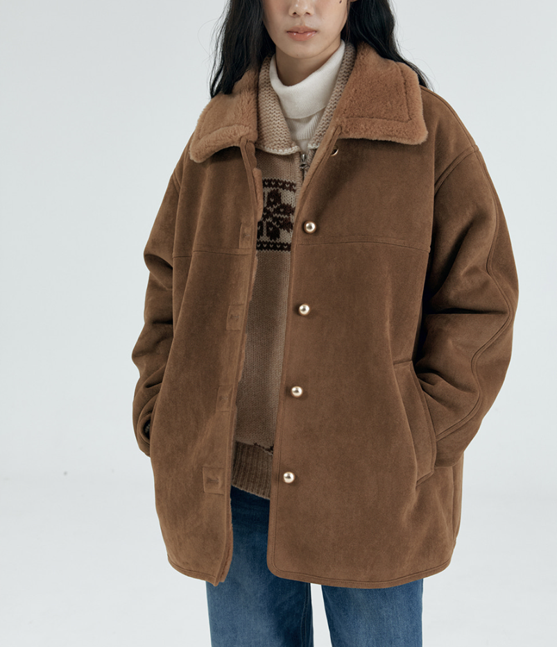 SIOT4171 페이크 스웨이드 무스탕 코트는 부드러운 터치감의