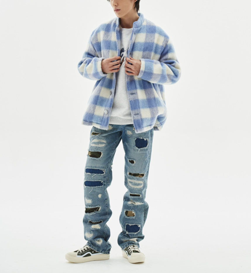 <모델명> MOHAIR CHECK CARDIGAN BLUE