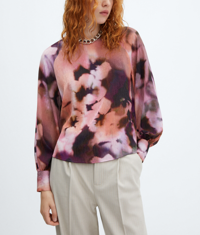 플로럴 프린트. 그라데이션 프린트. 라운드넥.