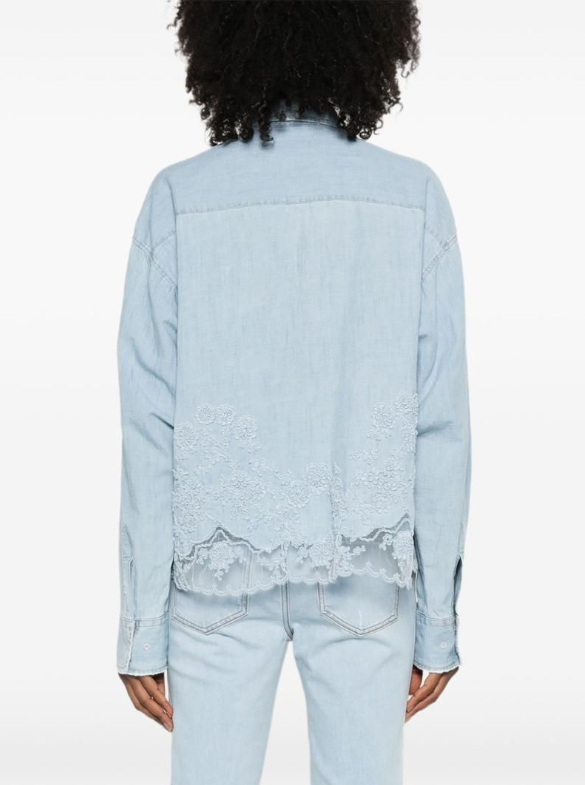 이일화 친밀한 리플리 88회 속 한혜라 밑단 레이스 데님 셔츠 패션_에르마노설비노 Ermanno Scervin