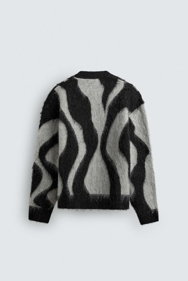 브러시드 마감 처리된 니트 릴렉스 핏 가디건.