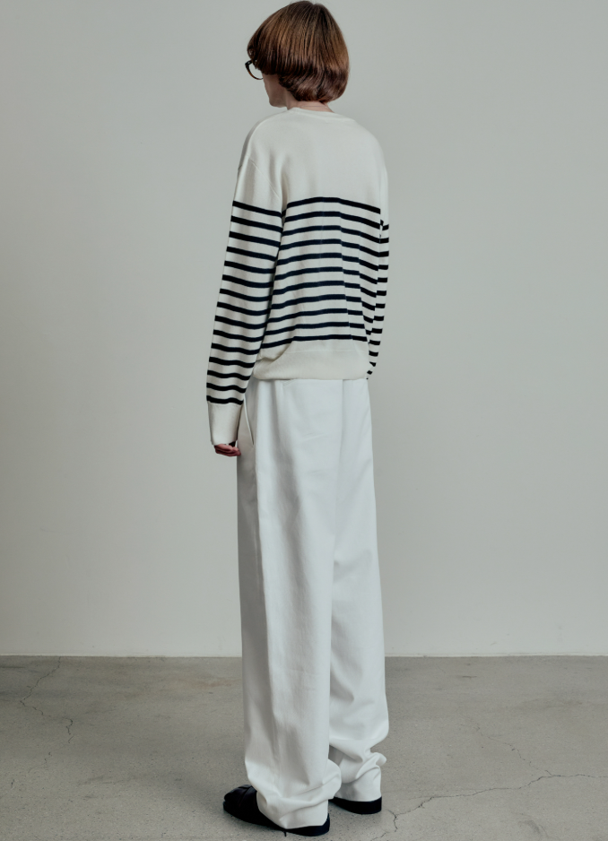 <모델명> 마린 울코튼 스트라이프 풀오버 니트 OFF WHITE