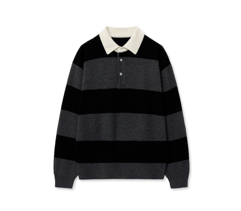 오버핏 울 캐시미어 럭비 폴로 니트 블랙