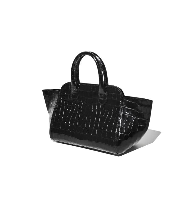 이 제품은 고급스러운 이태리 와니 레더를 사용하여 특유의 입체감이 돋보이는 **'Croco Forma Bag'**입니다. 블랙 컬러가 주는 묵직한 존재감과 와니 패턴의 화려함이 만나, 손에 드는 것만으로도 미니멀하면서도 클래식한 무드를 완성해 줍니다.