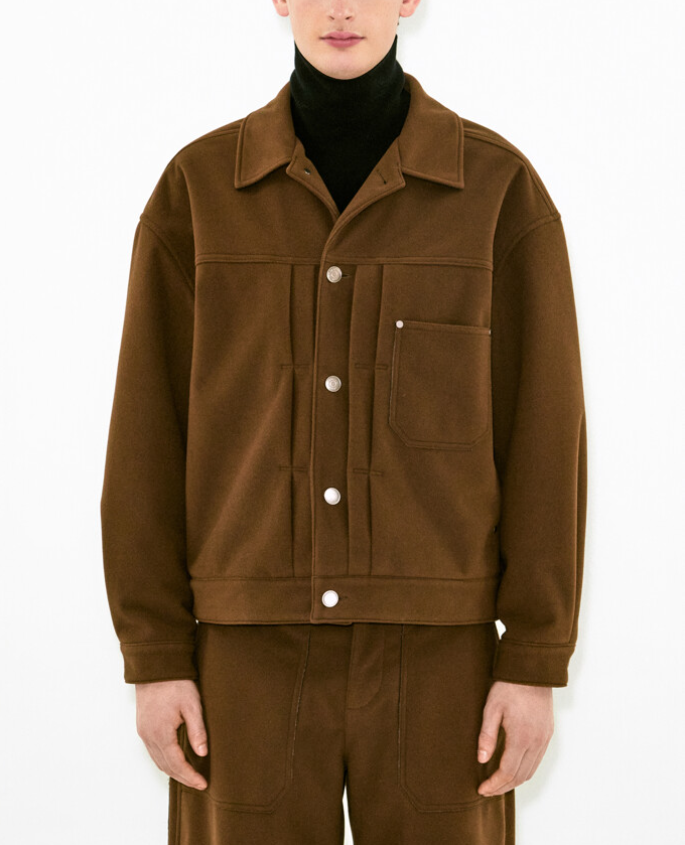 플래킷 라인 양옆에 섬세하게 잡은 턱 디테일이 구조적인 입체감을 더해줍니다.