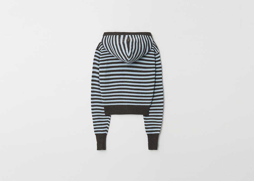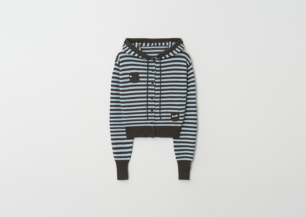 <모델명> MINI POCKET HOODED KNIT CARDIGAN BLUE STRIPE