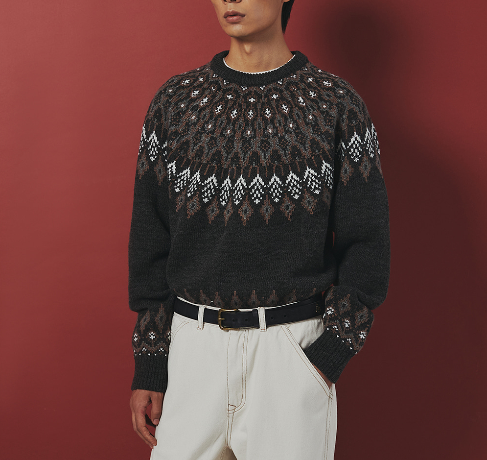 - 특징: 겨울 시즌 스테디셀러인 노르딕 패턴이 들어간 크루넥 니트입니다.