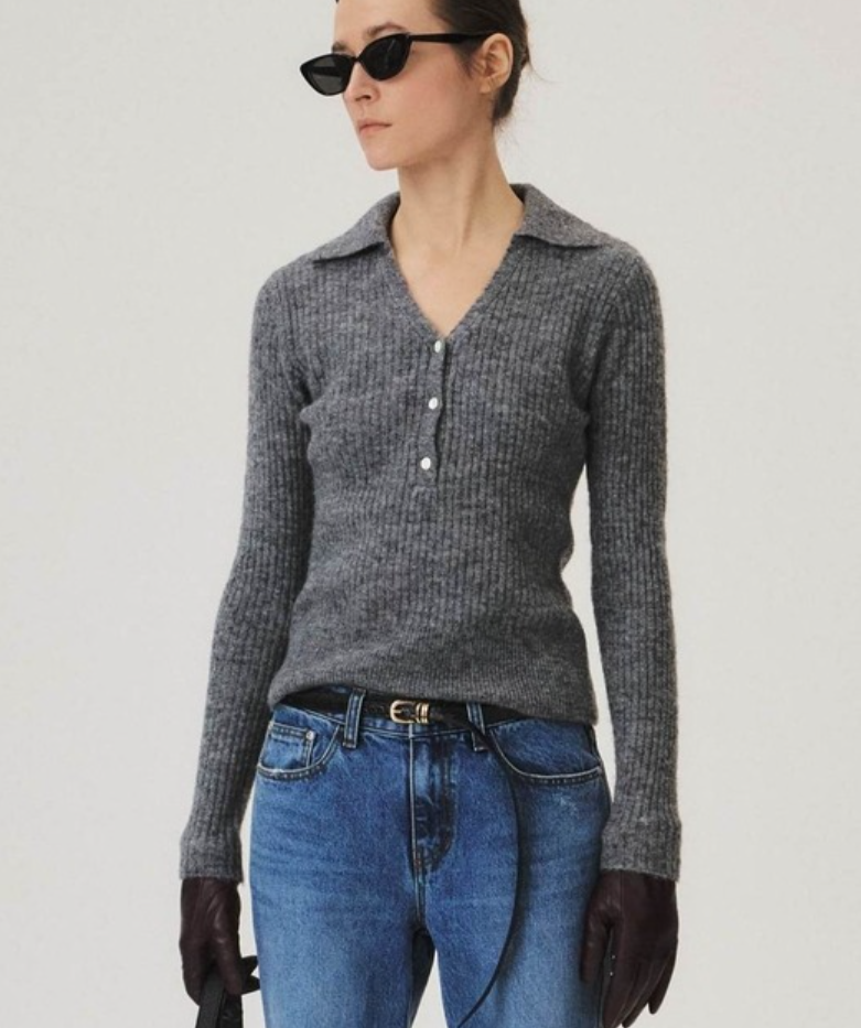 <모델명> V-neck Button Collar Sweater, Melange Gray