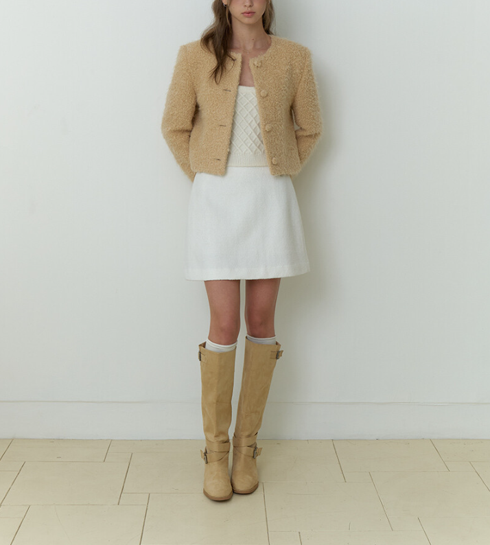 보송보송, 포근함을 가득 안겨주는 숏 기장의 트위드 자켓입니다.