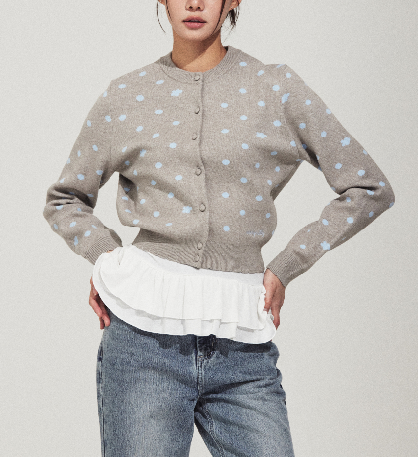 <모델명> 우먼스 릴리 도트 라운드넥 가디건 그레이