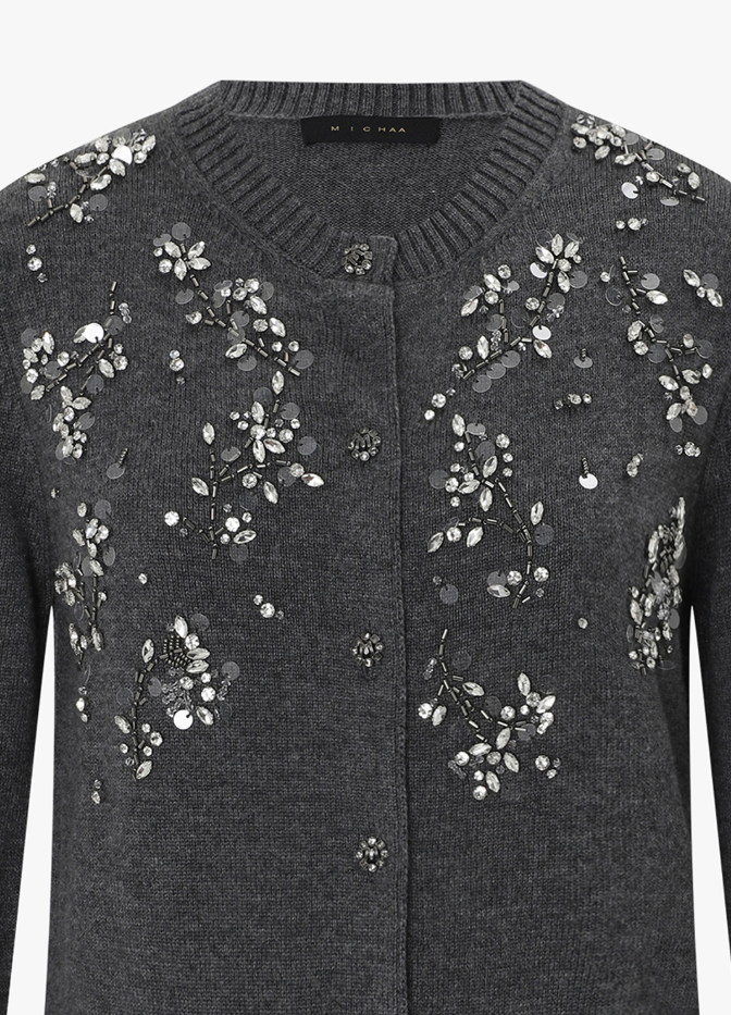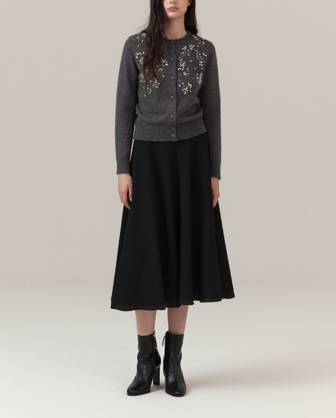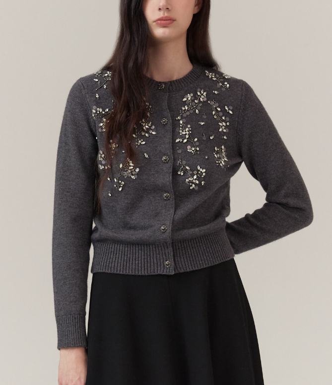 <모델명> 플라워 비즈 장식 울 가디건 MIPBKCD370 다크 그레이