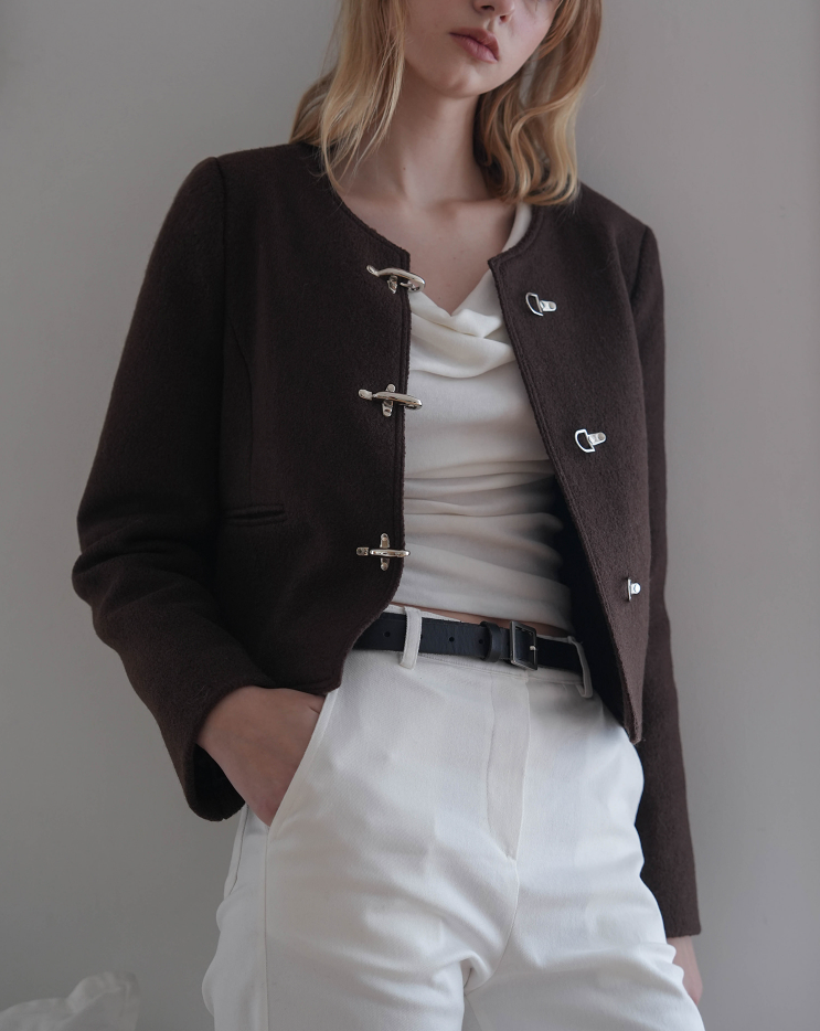 <모델명> Buckle Pointed Tweed Jacket [Brown]