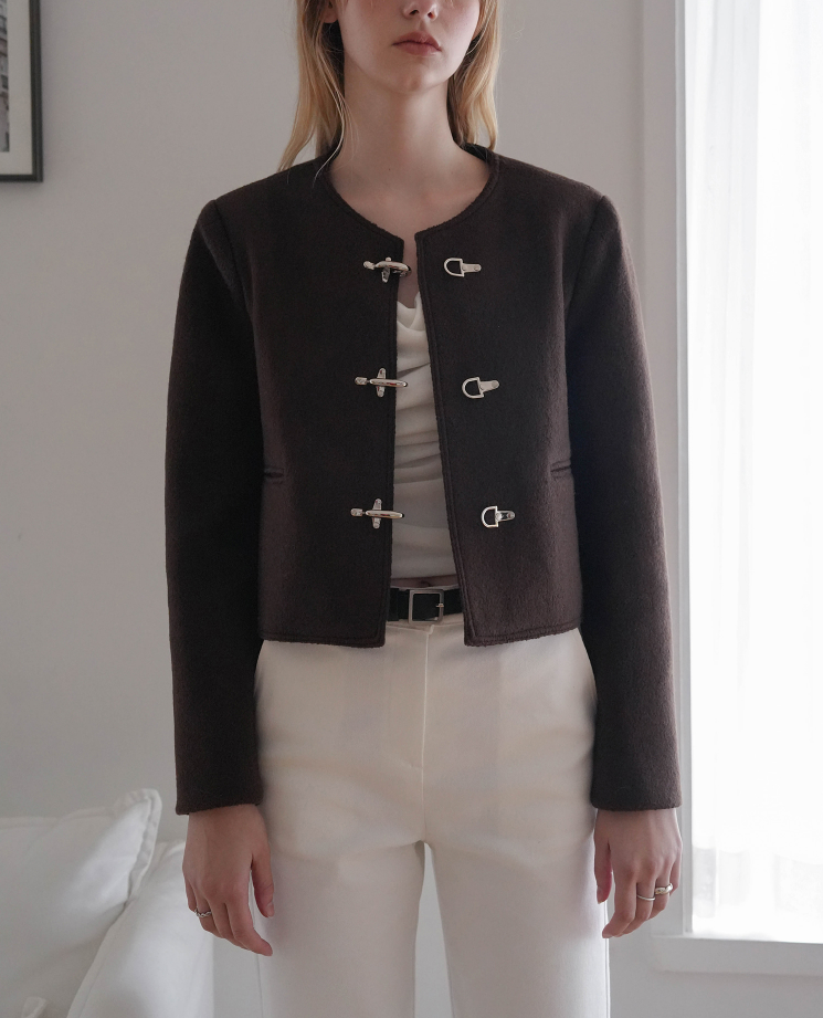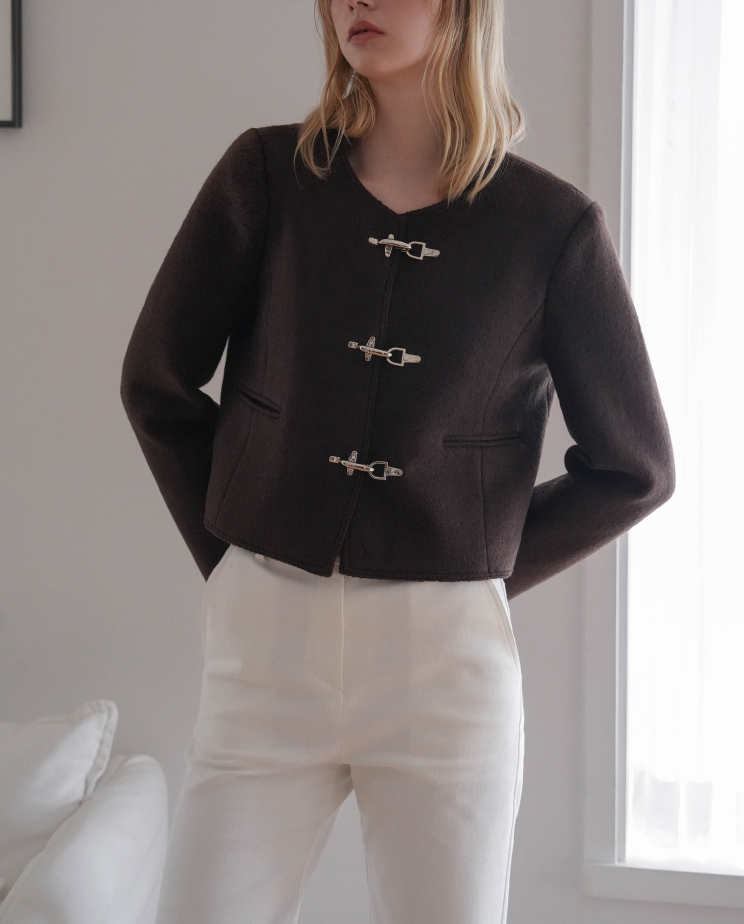 라운드넥과 메탈 고리 장식 여밈으로 클래식하면서도 모던한 감성을 담았습니다.