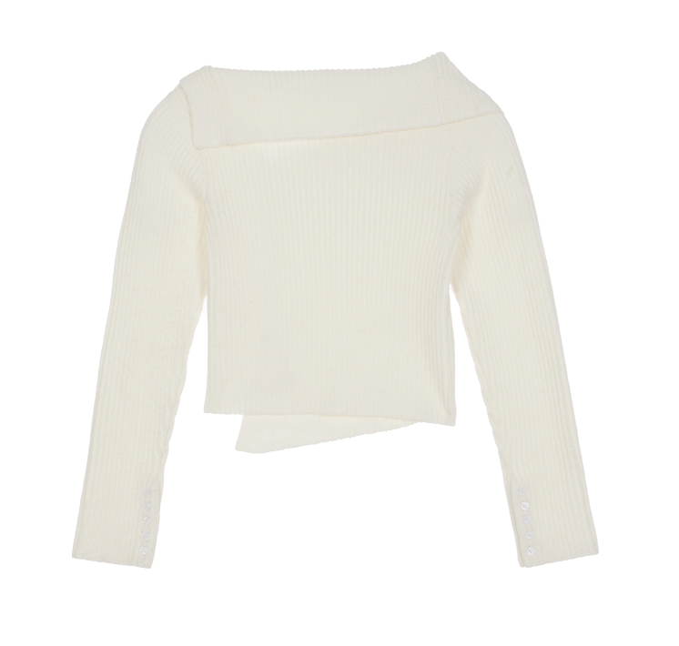 <모델명> Unbalance Collar Button Knit [IVORY]
