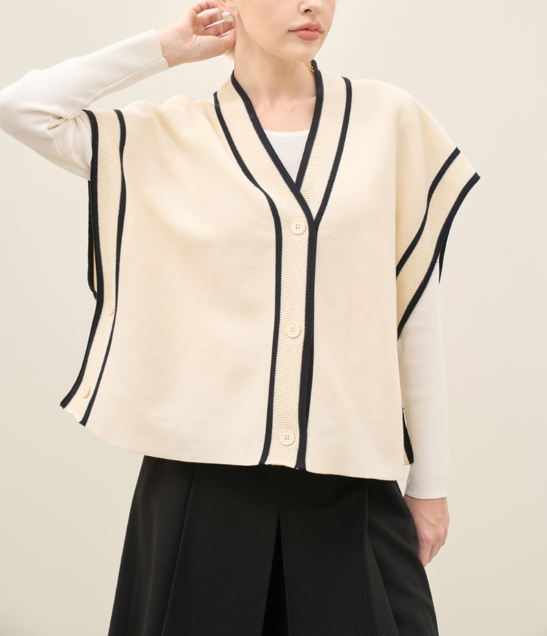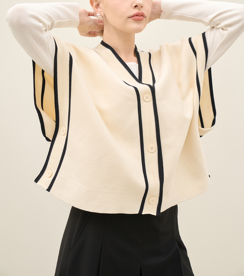 {가디건} 마리와 별난 아빠들 104회 :: 금보라(윤순애) / 미니마리 배색 라인 케이프 가디건